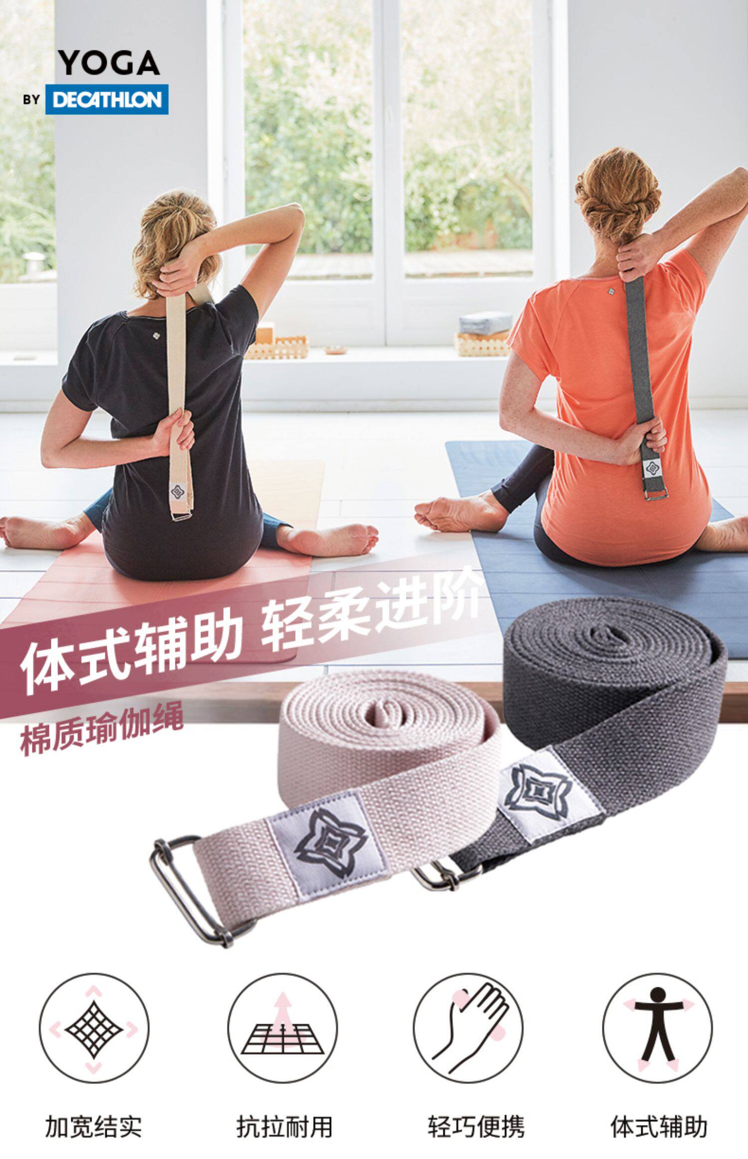 Decathlon йога веревка хлопчатобумажной мышцы растягивающейся йоги йога вспомогательная фитнеса растягивающаяся полоса eny0