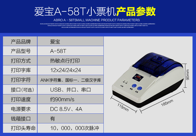 Aibao A58 A-58 Небольшой билетный принтер/Коммерческий/термическая чувствительность/Счет с супермаркетом 58 мм USB-последовательный порт