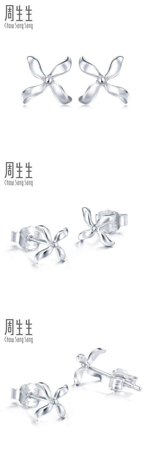 周生生 Платиновые серьги, платина 950 пробы