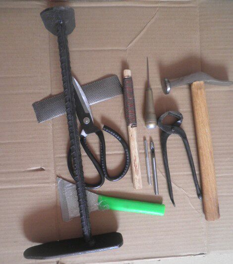 Инструменты, обычно используемые ремонтниками обуви: купите одну обувь с железными ногами.(Есть нефть, используйте его после получения товара и почистила), Утка оба мусульманского молотка 1, 1 треугольный нож(Используйте его раньше, треугольный нож - сталь, а некоторые партийные ножи имеют ржавчину на устье ножа и не влияют на использование.).).).锉 锉 锉, Ремень насоса 2СущностьКартинка физическая фотография.