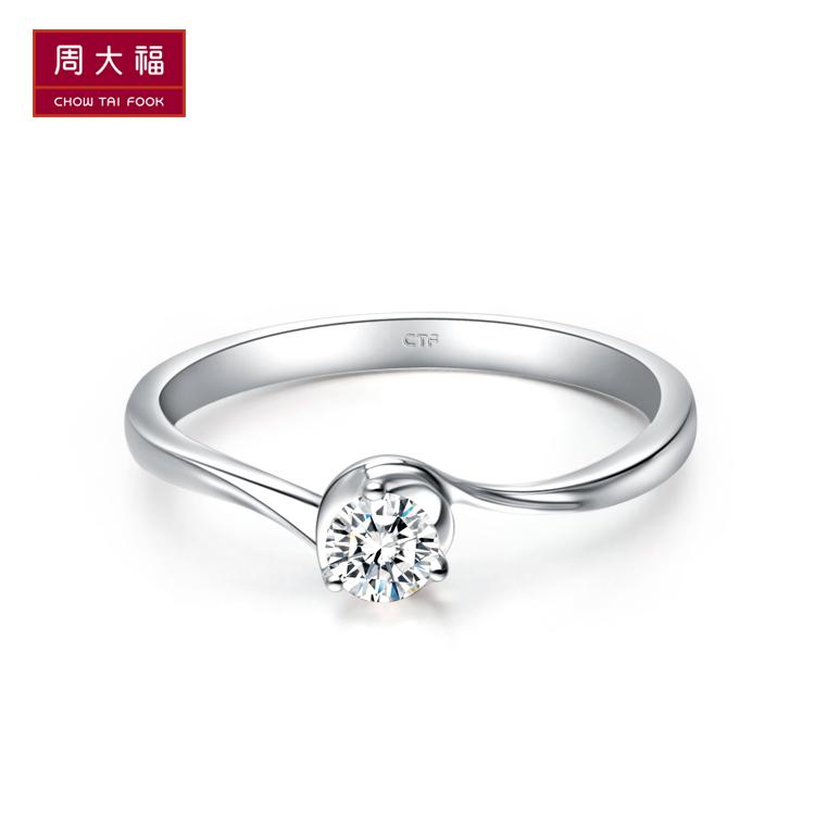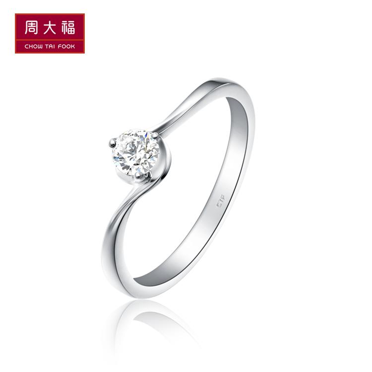 [刻字 周大福唯爱系列18K金镶钻石戒指/钻戒U103441送礼]