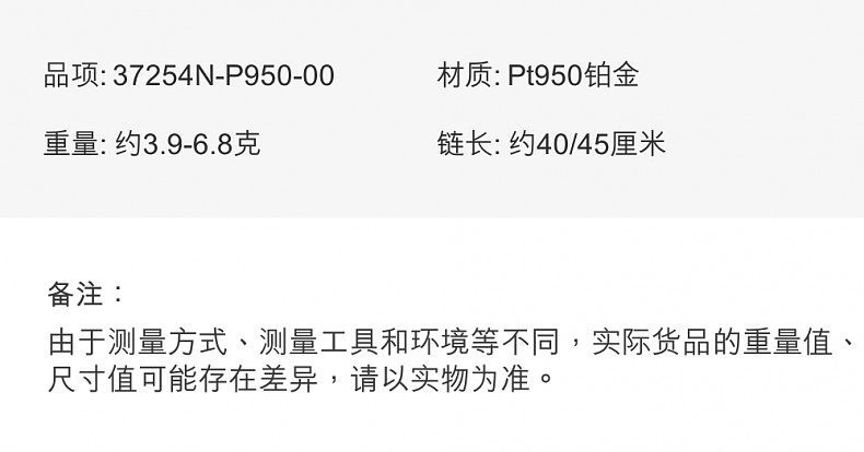 周生生 Платиновое универсальное ожерелье, платиновая цепочка, платина 950 пробы