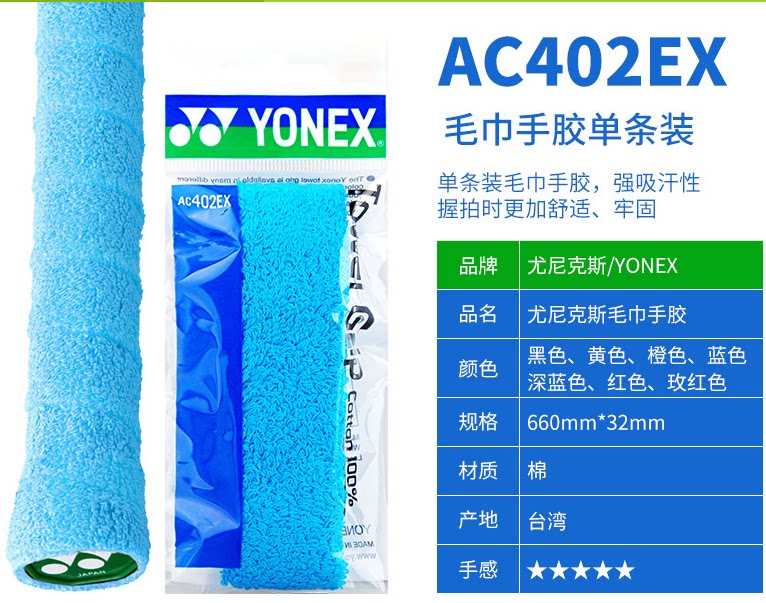 Yonex yunix badminton Racket Sweat -Absorbent хлопковые полотенца для рук клей без качества поглощения Ac402EX ОДИНАЯ УСТАНОВКА