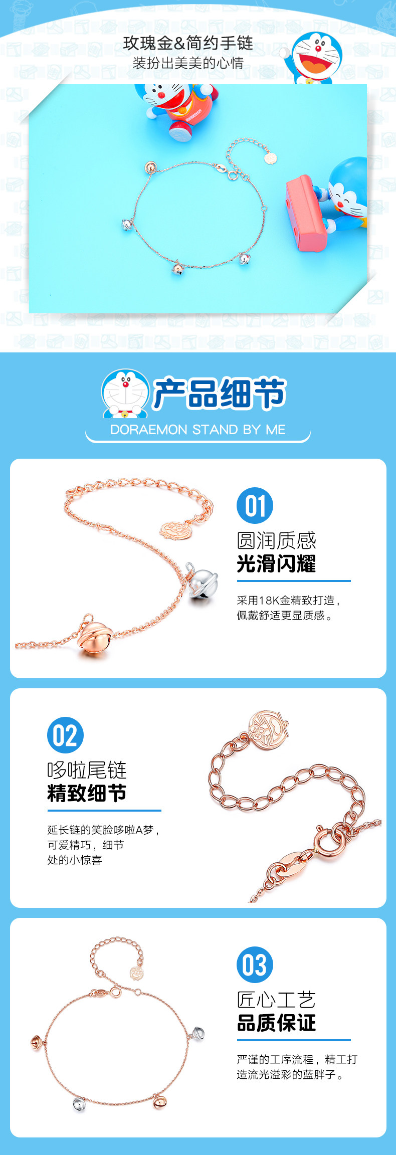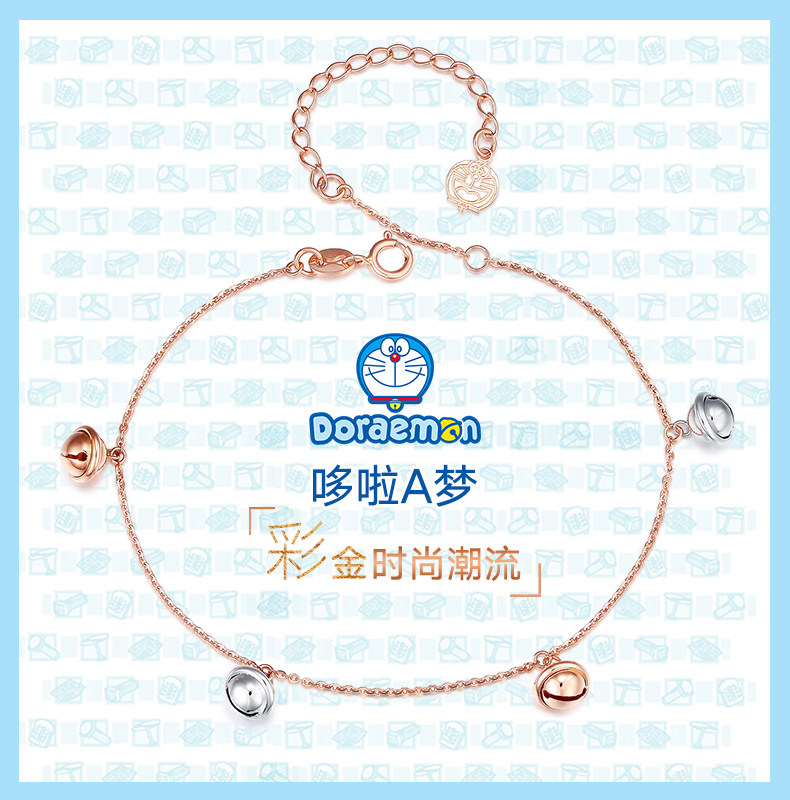 Acer, колокольчик, золотой браслет, Дораэмон, 18 карат, розовое золото, золото 750 пробы