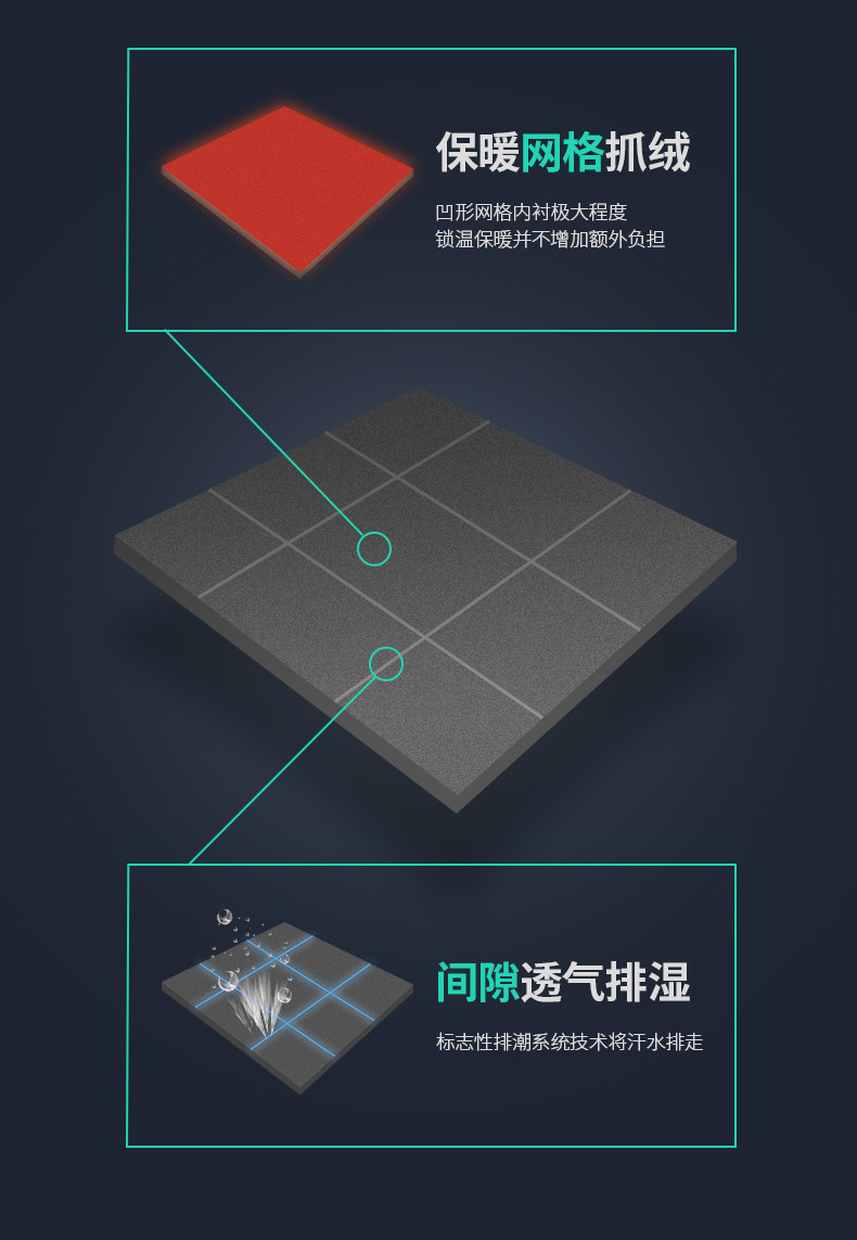 - Polartec Power Grid -клетчатая бархатная ткань; Он гладкий снаружи и легко вводить и выключаться, а тонкий короткий клетчатый бархат внутри обеспечивает дышащие, теплые и без поты;