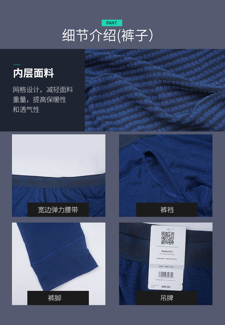 Patagonia Capilene 4 ThermalWeight  используйте 3,8 унции Polartec® Power Grid&Торговля; файл, с хорошей эластичностью, отличным теплом, дышащим и быстрым сушением, ткань долговечна, мягкая и была обработана свежей антибактериальной дезодоризацией HEIQ. Продукты прошли сертификацию Blue Label и сертификацию справедливой торговли.