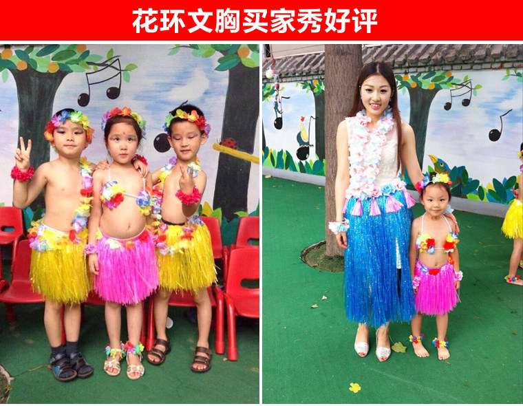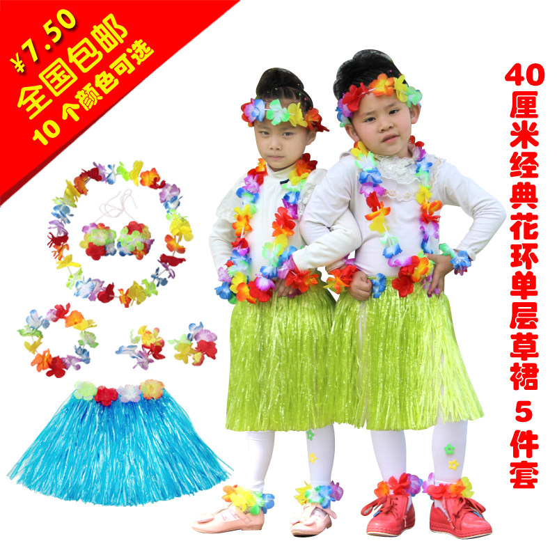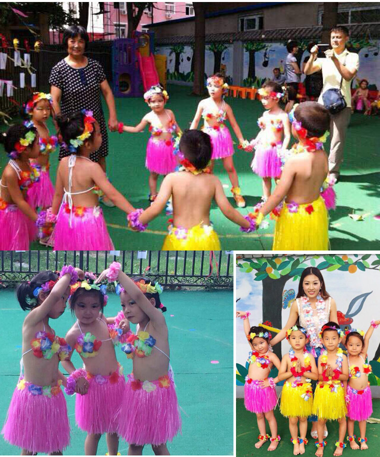 Детский день, танцевальный конкурс, юбка хула, комплект из 5 предметов, гавайская юбка хула, комплект для выступлений, 40 см