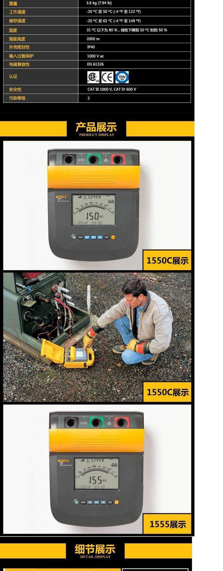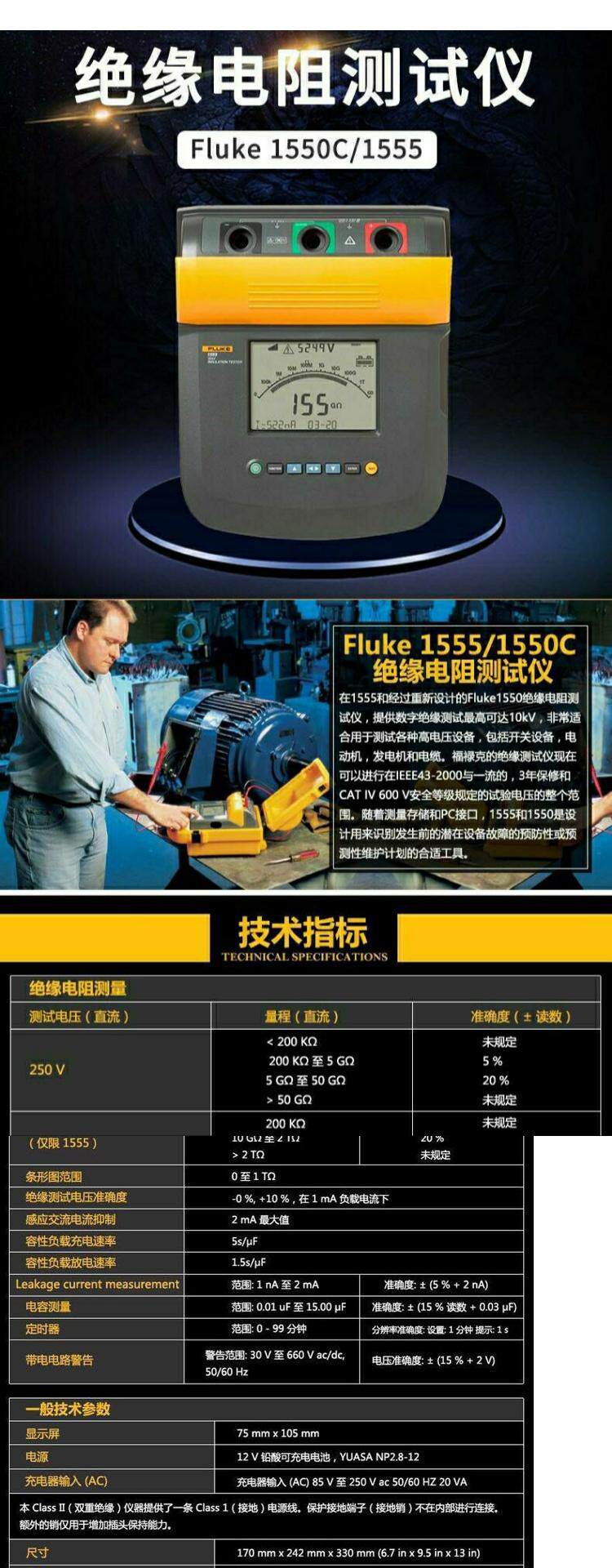 Fluke 1550C/FC 5000V Изоляционная тестер/сетка Европейская европейская доставка без флога