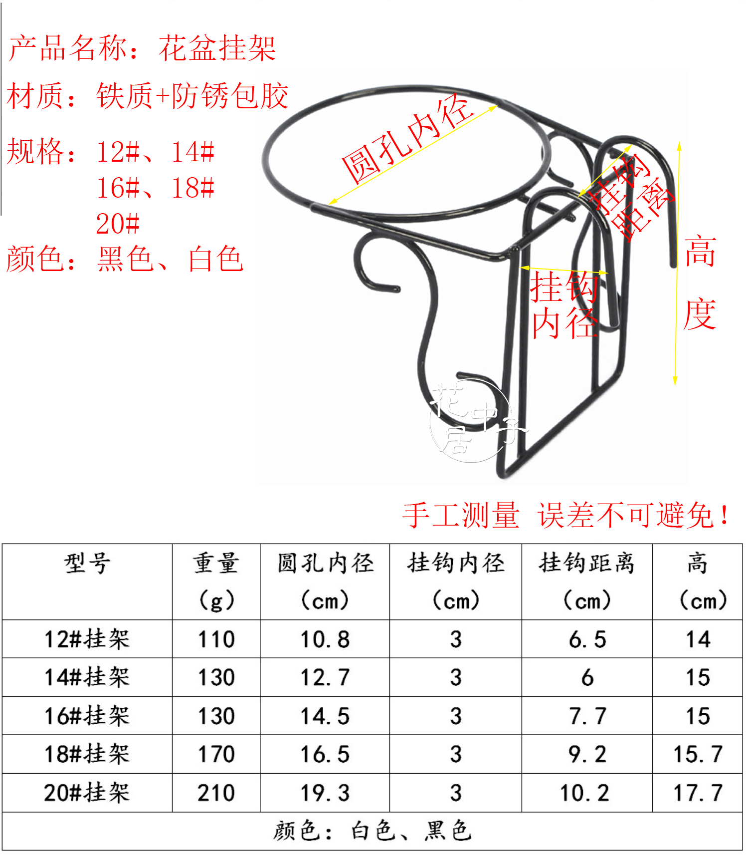 • Белый 12 # с круглым отверстием, внутренний диаметр 10,8 см.