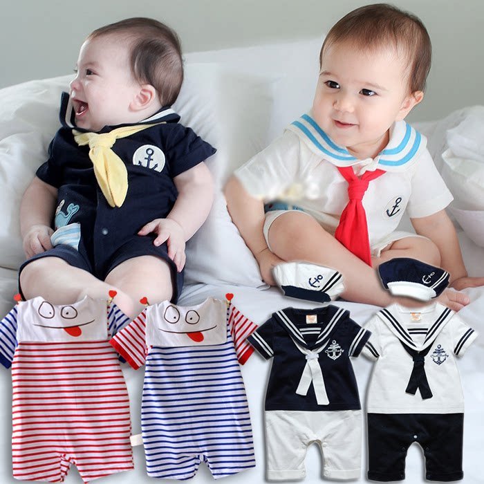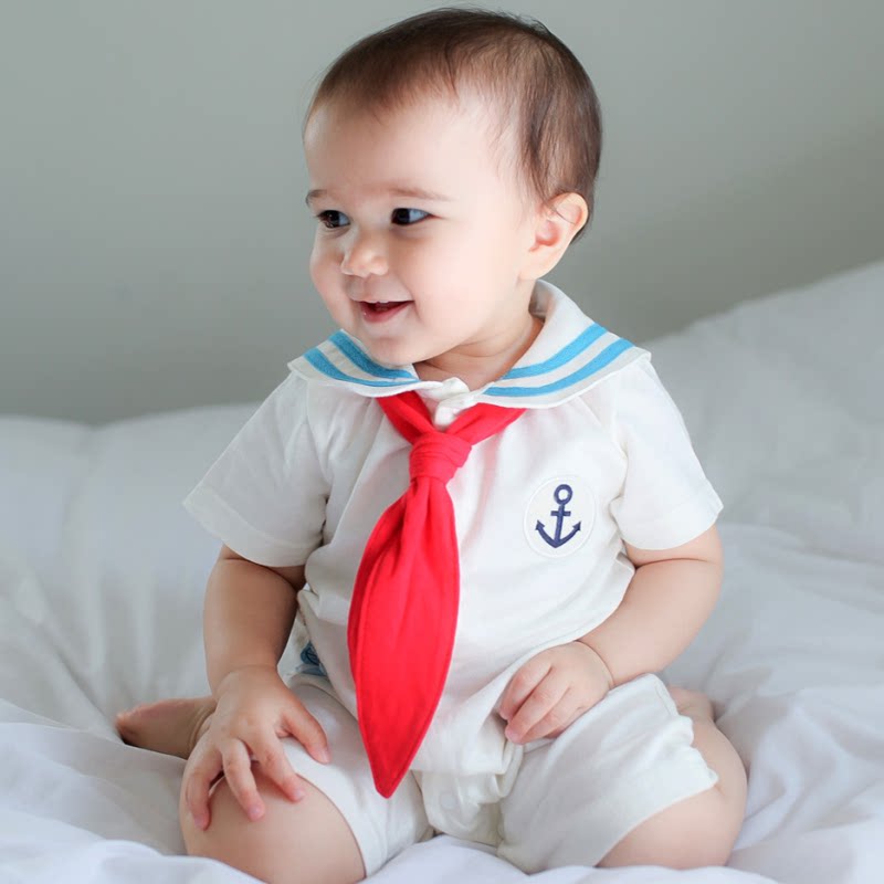 Летняя детская военно-морская летняя одежда подходит для мужчин и женщин для девочек, хлопковое боди, короткий рукав