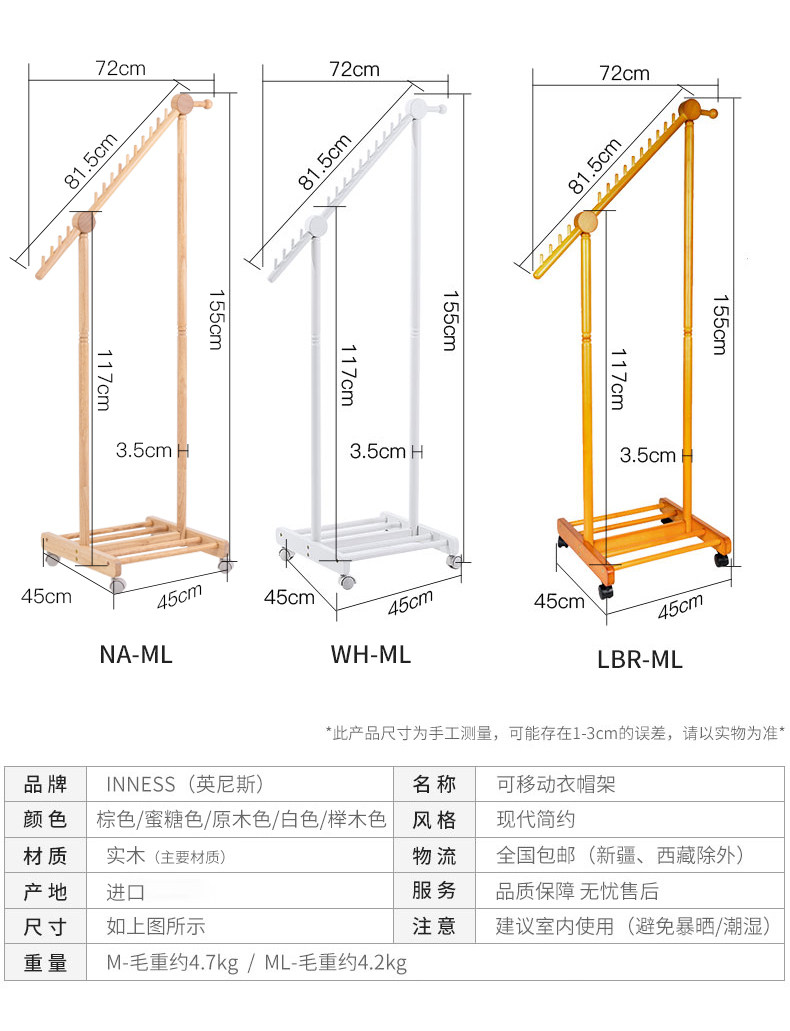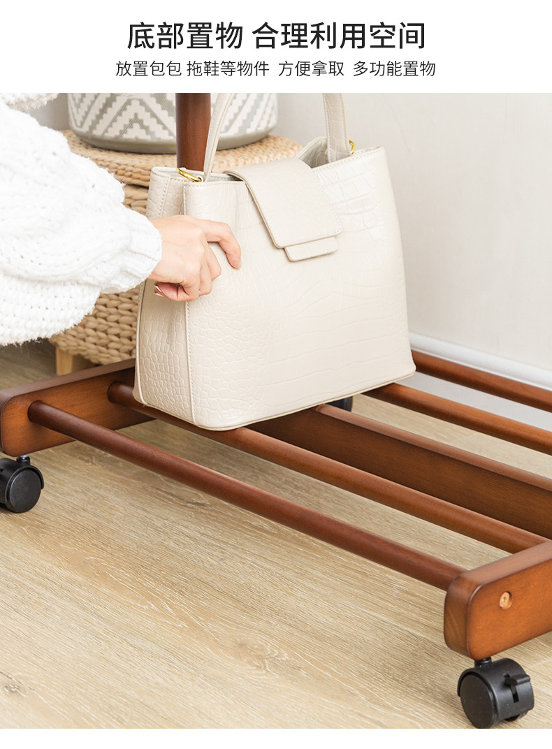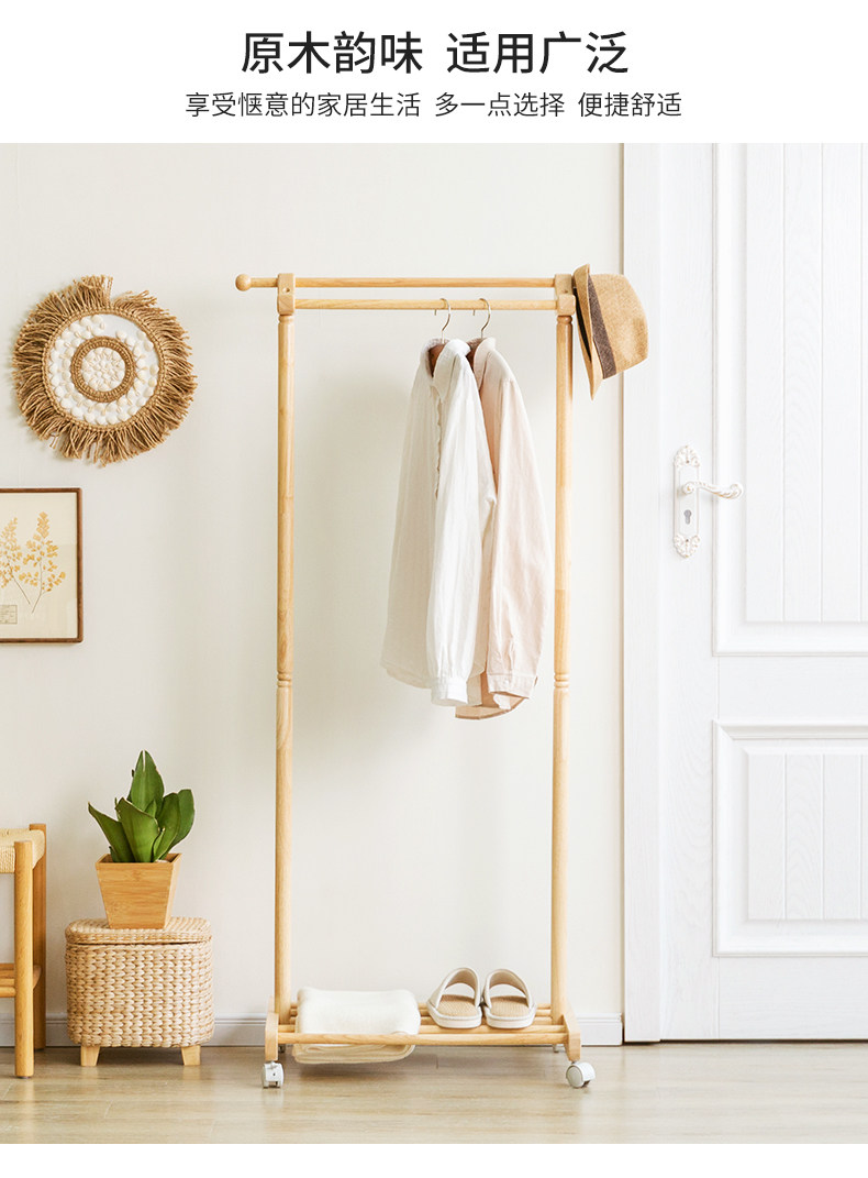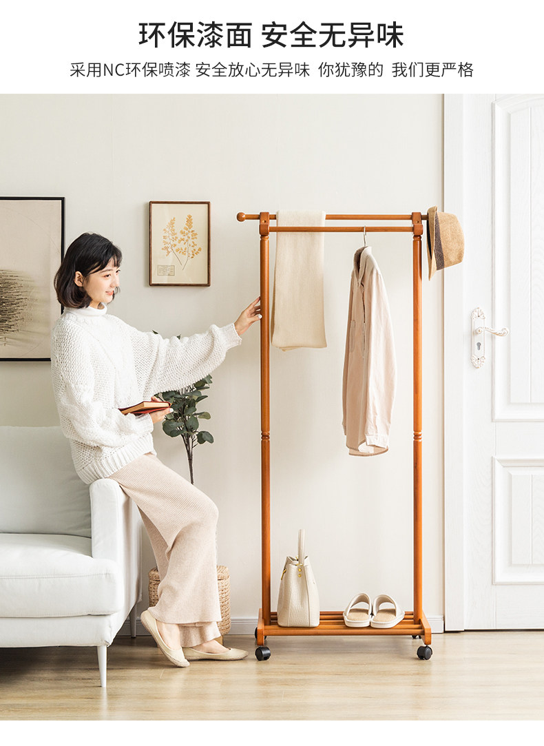 Сплошной древесиной двойной пелот для стойки на пол -к гостиной -комнатной комнате, подвесная вешалка Простые и современные домашние стойки для одежды могут двигаться