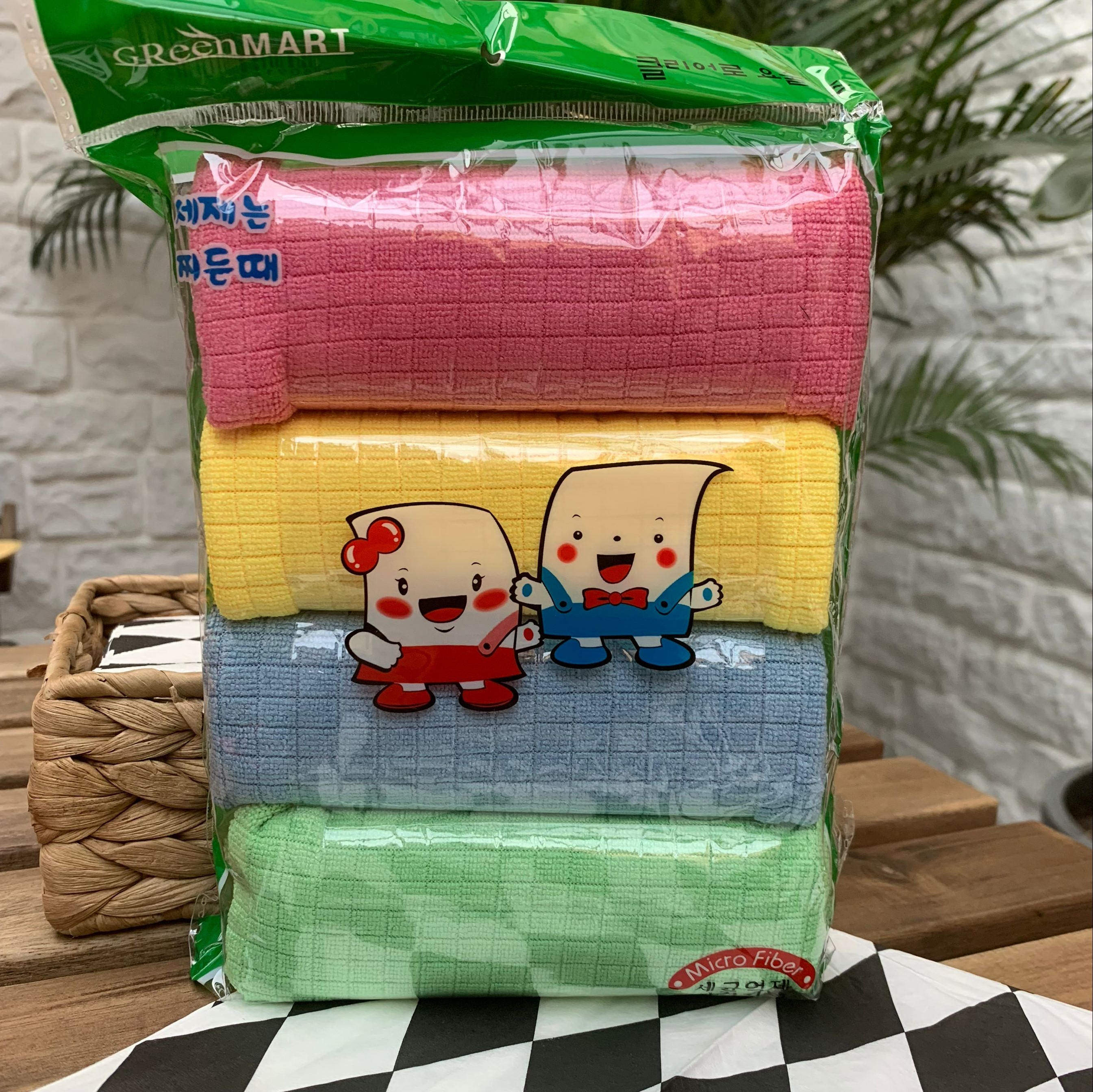 4 Корейские ультра -волоконные посудомоечные миски, протрите столик тонкие маленькие тряпки, без волос, водопоглощающая ткань