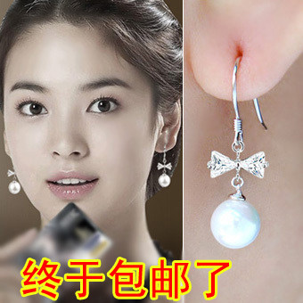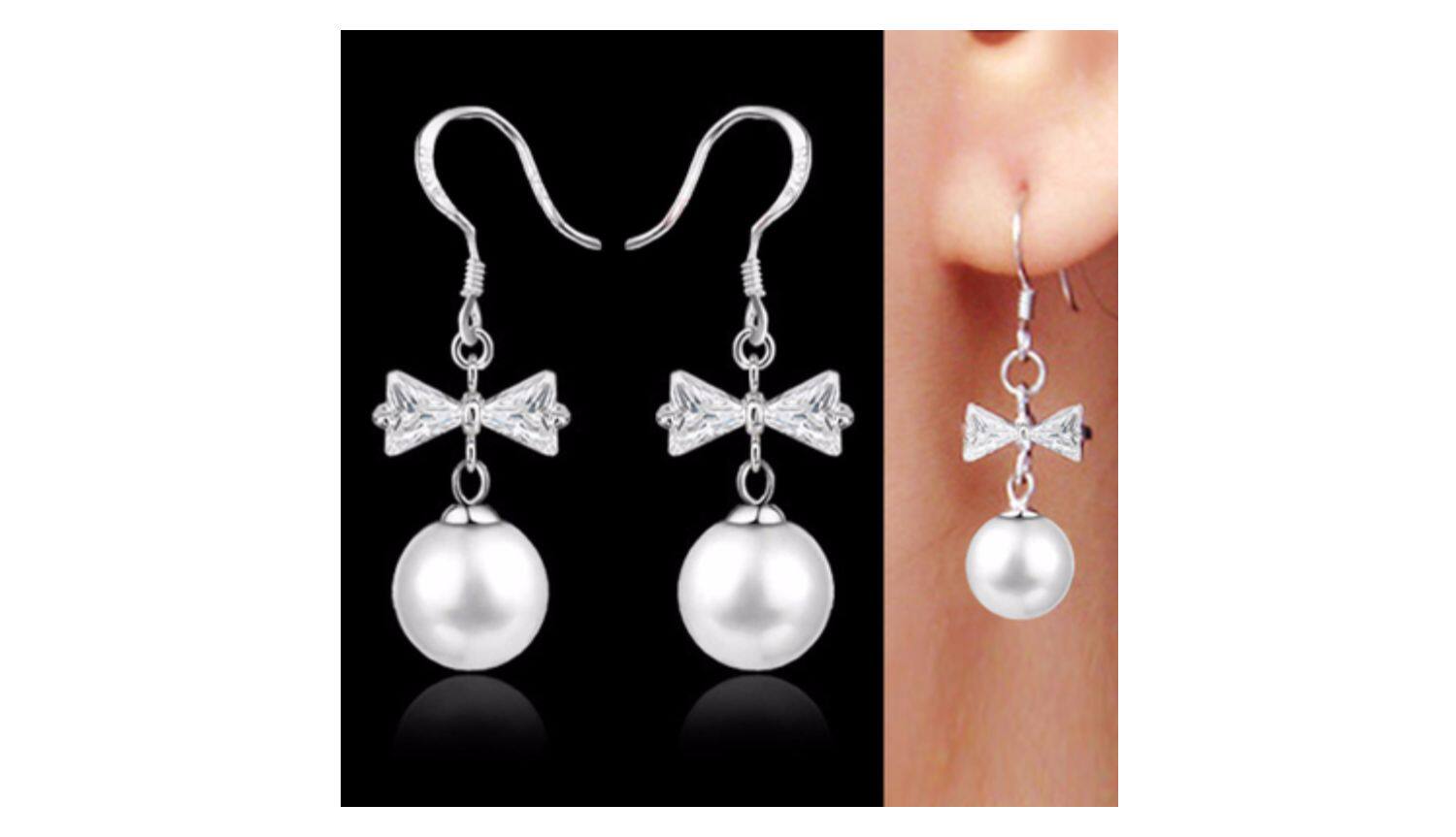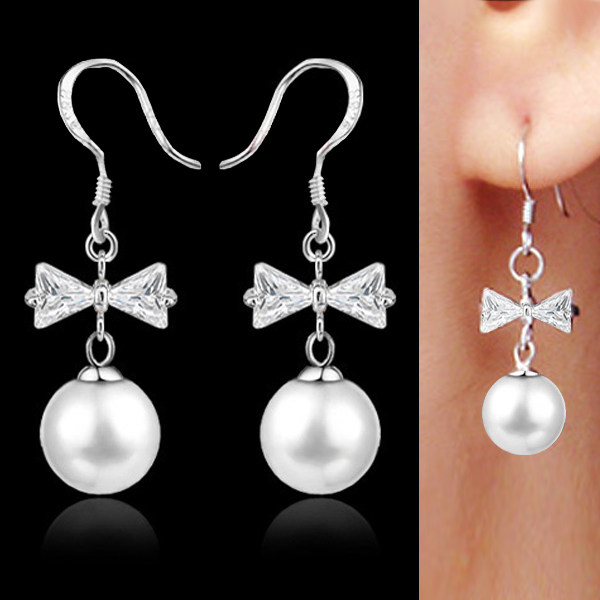 Длинные гипоаллергенные серьги из жемчуга с бантиком, в корейском стиле, серебро 925 пробы, серебро 925 пробы