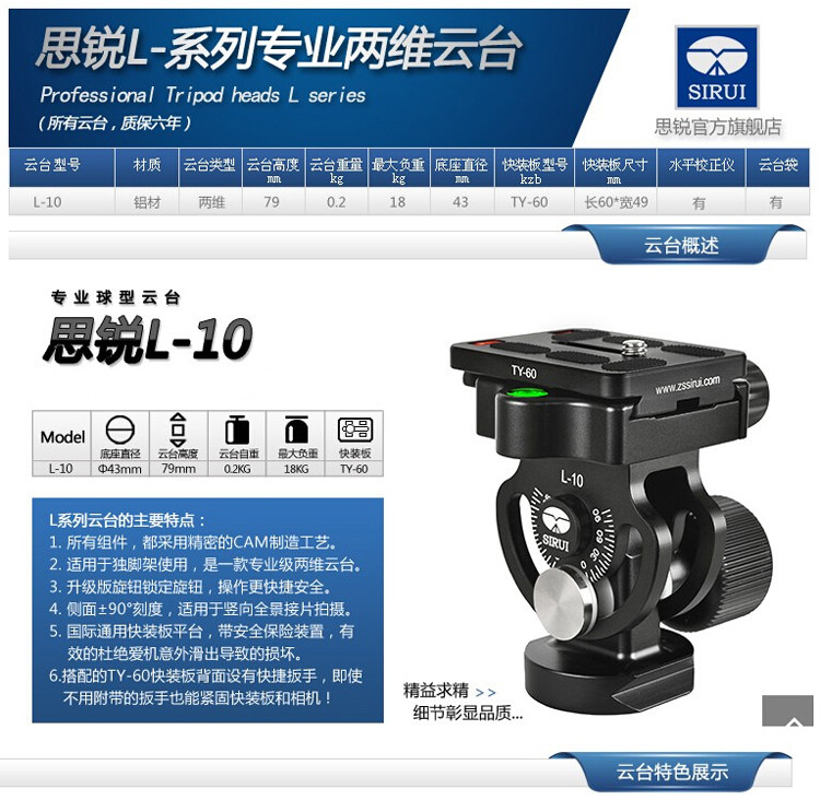 Sirui Siri Tpeerod Одиночный штатив Двумерный Гимбал L-10X L10x Гарантия
