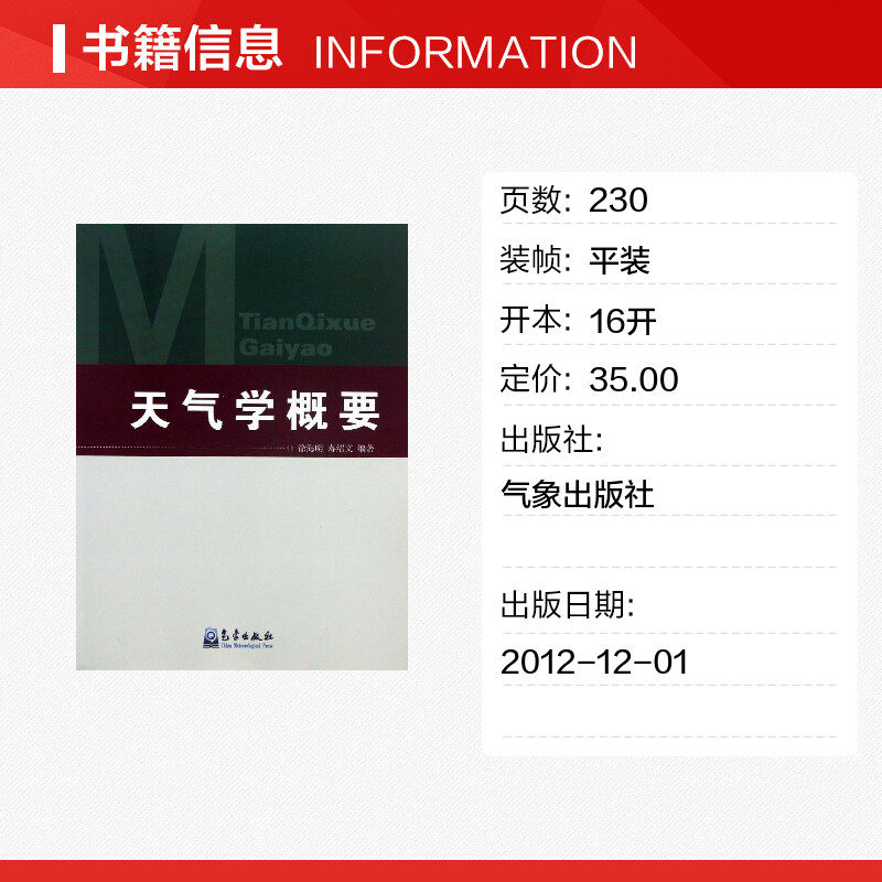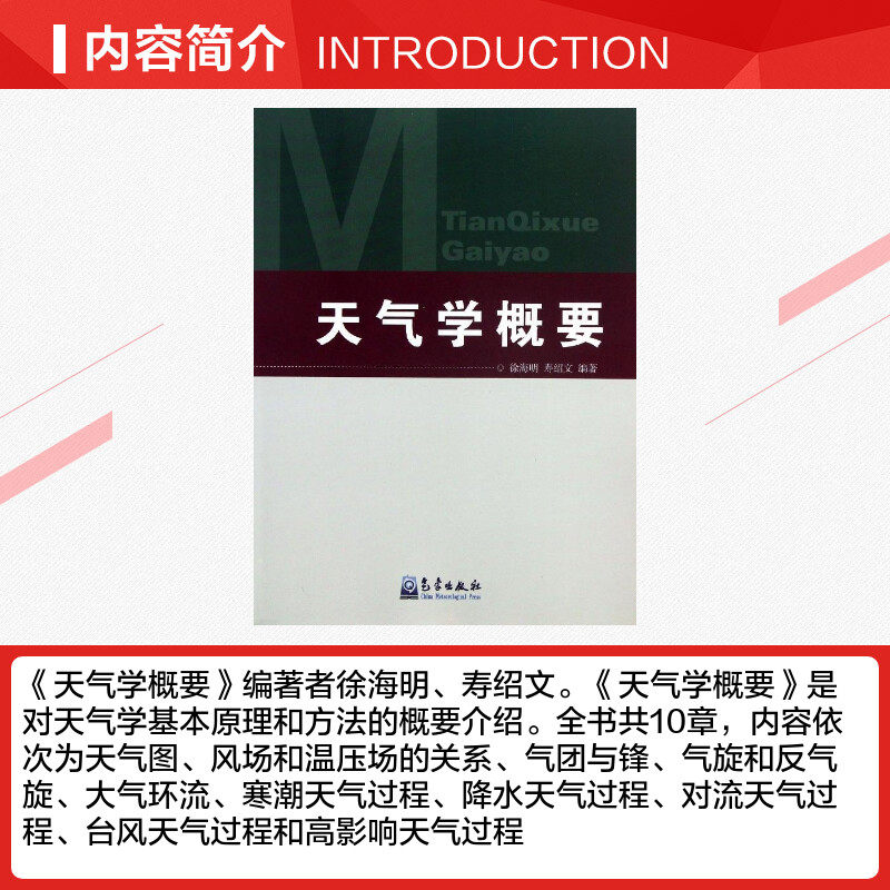 «Краткое содержание синоптики» представляет собой обзор основных принципов и методов синоптики.Всего в книге 10 глав, охватывающих карты погоды, взаимосвязь между полями ветра и полями температуры и давления, воздушными массами и фронтами, циклонами и антициклонами, атмосферной циркуляцией, погодными процессами холодных волн, погодными процессами осадков, погодными процессами конвекции, погодными процессами тайфунов и погодными процессами со значительными последствиями.