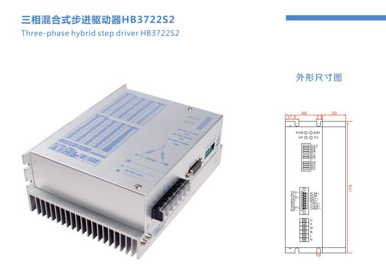HB3722основан наDSPКонтролируемый трехфазный гибридный шаг двигатель, он будет продвинутымDSPУправляйте чипом и трехфазным модулем привода реверса в сочетании с новым поколением цифровых шаг двигателя, состоящих из вместе.Напряжение драйвера естьAC110-220V,Адаптация ток есть7.0AНиже, внешний диаметр57-130MMТрехфазный гибридный шаг двигатель различных моделей.Драйвер использует схему, аналогичную принципу сервопривода. моторСамая высокая точность позиционирования60000шаг/изменять.Этот продукт широко используется в большом и среднем управляющем оборудовании, таком как резьба, машины среднего масштаба с ЧПУ, компьютерные вышивки и упаковочные машины.