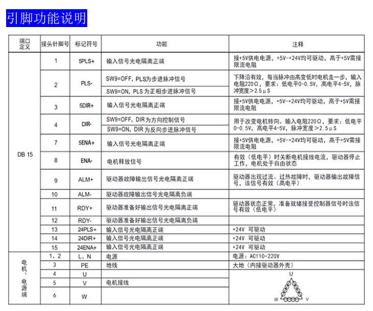 &миддот; Функция фазовой памяти (примечание: вход перестает превышать3Через несколько секунд драйвер автоматически запоминает электрический аспект двигателя в то время, повторно пообещал илиWFСигнал изменяется с низкого уровня на высокую электричество, и драйвер автоматически восстанавливает фазу двигателя)