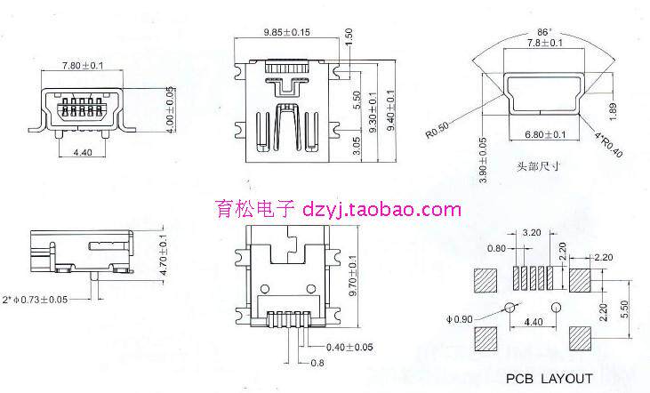 5pf Iron Mother Mini USB Mini USB Мать мест для места сидения 5p Плачковая патч Shenzhen Yusong Electronics