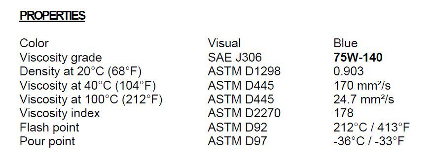 Согласно стандарту SAE J306, обновленным в июле 1998 года, продукт остался на уровне 140 после 20 -часового теста сдвига.