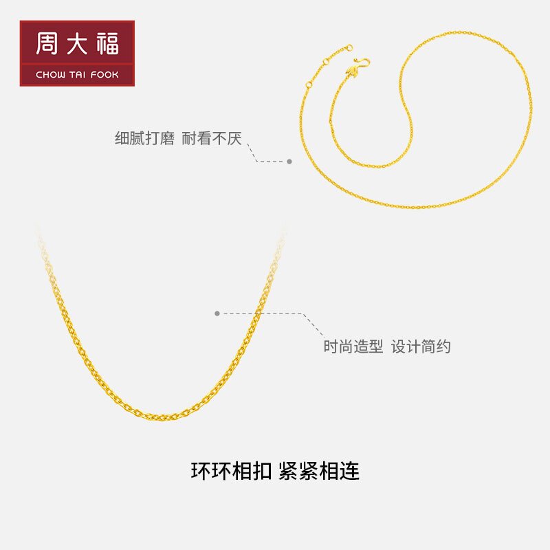 周大福 Золотая цепочка, ожерелье, простой и элегантный дизайн