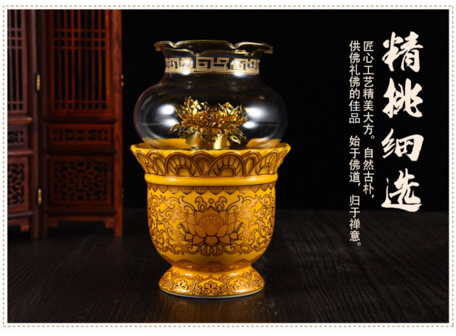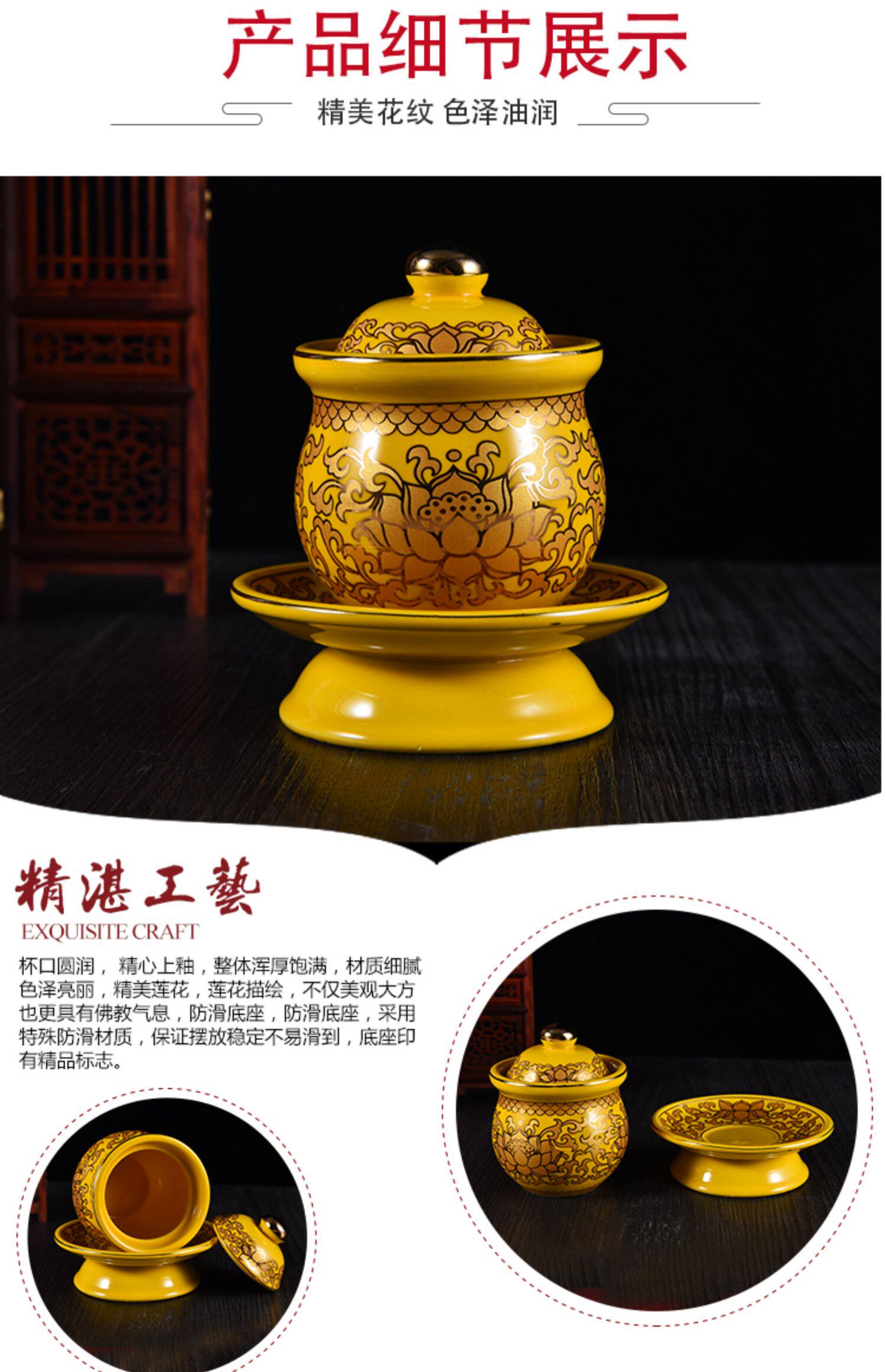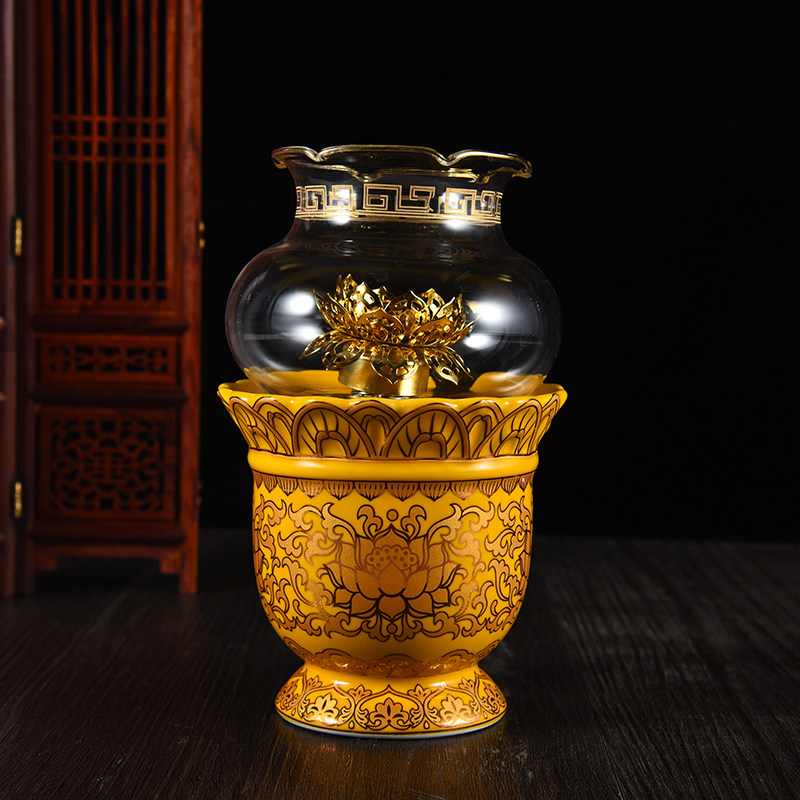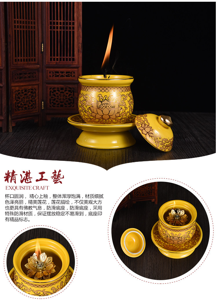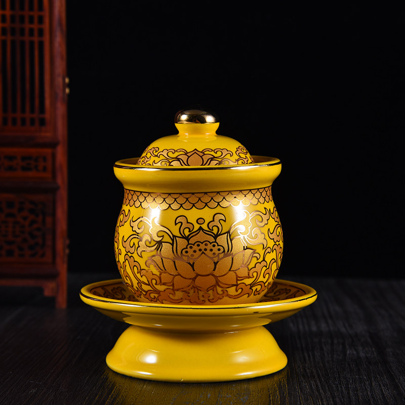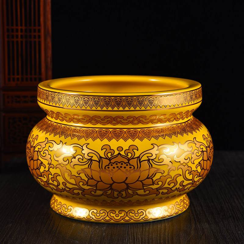 Mingzu для буддийского снаряжения керамика настоящая золотая лотосовая печь копченой печи чашка водопроводной чашки буддийские храмы вазы украшений