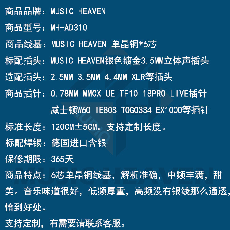 Music Heaven AD310 OCC Monocrystall Crystal Copper MMCX 0,78 A2DC IE40 IE500PRO SE846 IE80S AONCH5 2.5 4.4 Строка