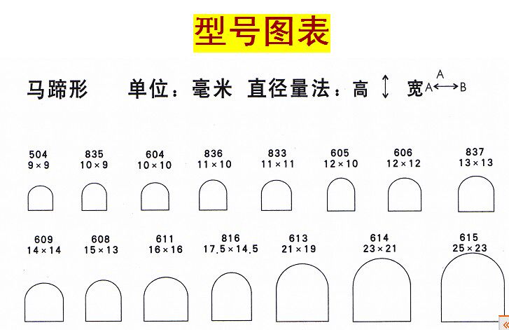 Например, 608 = 13x15  15 представляет высокую, высокую 13 представляет ширину, не преднамеренно различайте, что высока, что широкая, форма подковы является формой, а плоская форма подковы не имеет размера подковы.