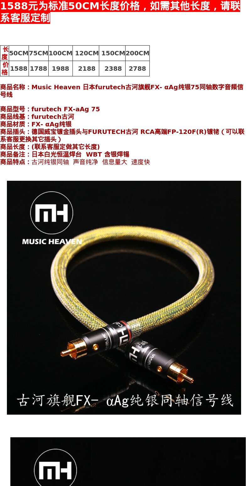Music Heaven Furutech FX-AAG 75 Древний гетшин серебряный коаксиальный цифровой аудиосигнал