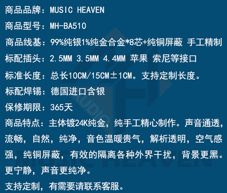 Music Heaven BA510 золотой и серебряный сплав восемь ядер+чистый медный щит 3.5 2.5 4.4 Lightning Line Out Aux Audio Line