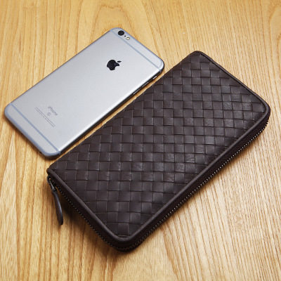 Плетеная кожаная маленькая сумка клатч, мужской длинный изысканный бумажник с молнией, из натуральной кожи