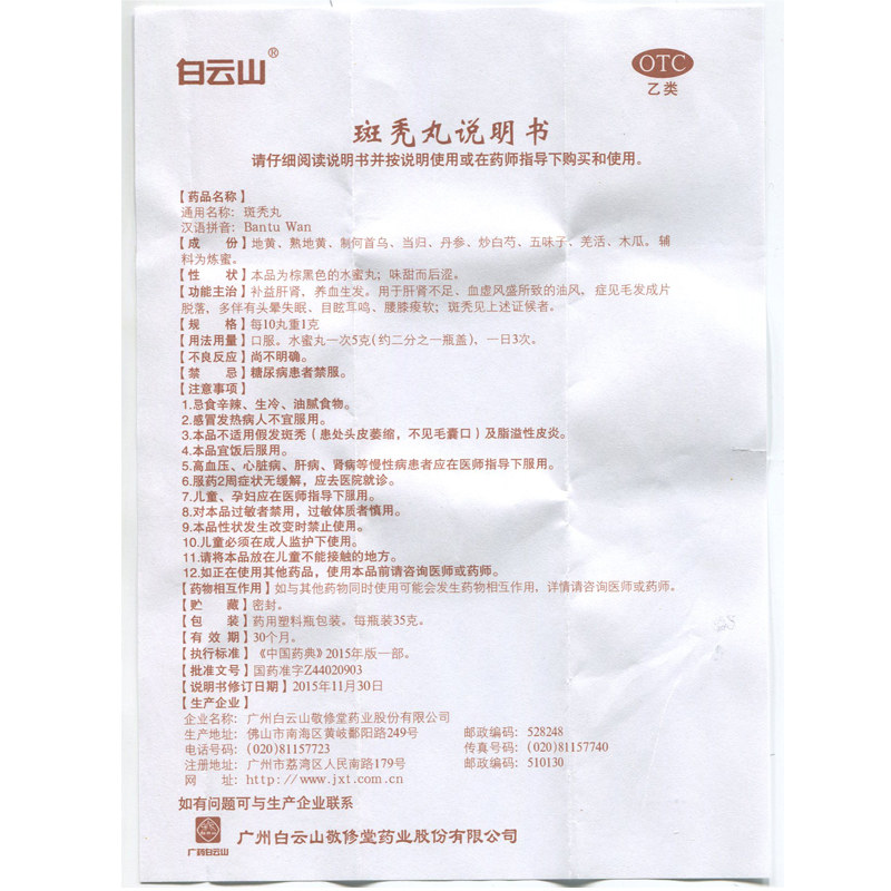 10 коробок] Baiyunshan jingxiu Habagin Pill 35G 35G Тоническая печень и головокружение почек, шум в ушах, выпадение волос Alopecia Areata Medicine