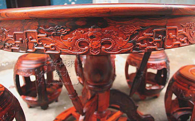 Красное дерево, лаосский палисандр, массив дерева, резной круглый стол, барабанный стол, кочин, кошениль, комбинация в китайском стиле, утолщенный круглый обеденный стол