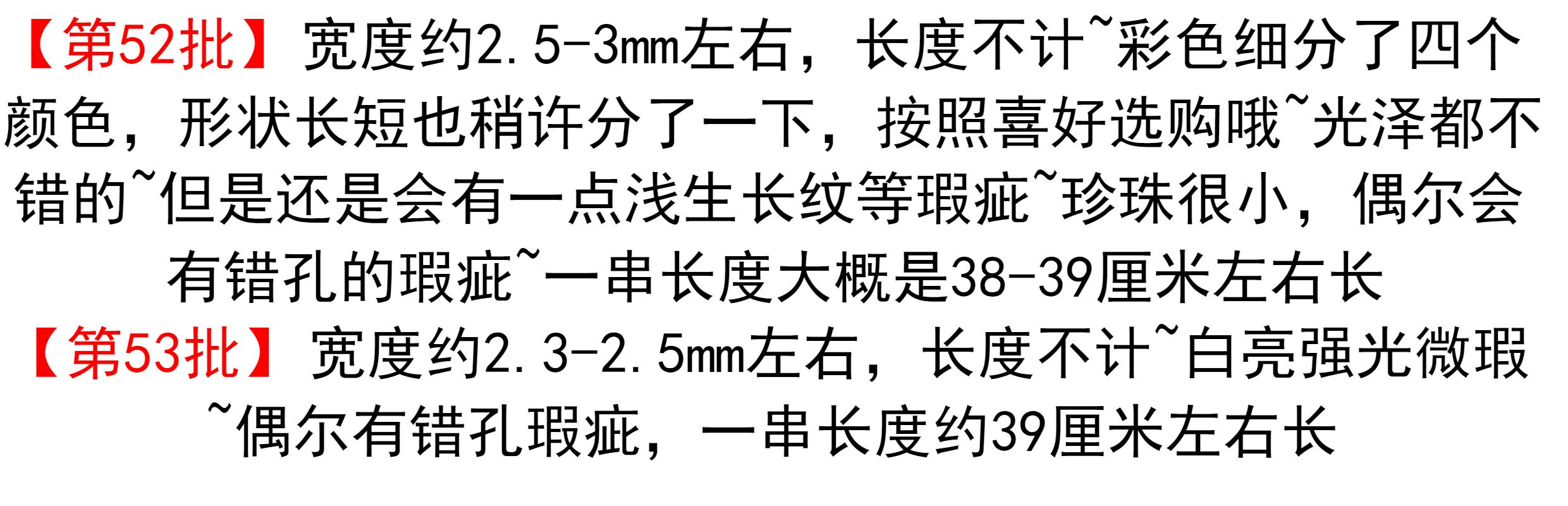 | Цвет: | Оранжевый розовый (партия 52) шириной около 2,5-3 мм, около 38-39 см., Розовый (партия 52) шириной около 2,5-3 мм, около 38-39 см., Розовый фиолетовый (партия 52) шириной около 2,5-3 мм, около 38-39 см, Розовый фиолетовый (партия 52) шириной около 2,5-3 мм, около 38-39 см, Апельсиновый розовый удлинен (партия 52) шириной около 2,5-3 мм, Розовый удлиненный (партия 52) шириной около 2,5-3 мм, Розовый фиолетовый и вытянутый (партия 52) шириной около 2,5-3 мм, Розовый и фиолетовый длинный (партия 52) шириной около 2,5-3 мм, Белый 2-2,3 мм (партия 54) около 38 см в длину, Белая модель около 2,7 мм (партия 55) белая, около 38 см в длину, Белая модель B около 2,7 мм (партия 55) обычный белый, около 39 см в длину |
