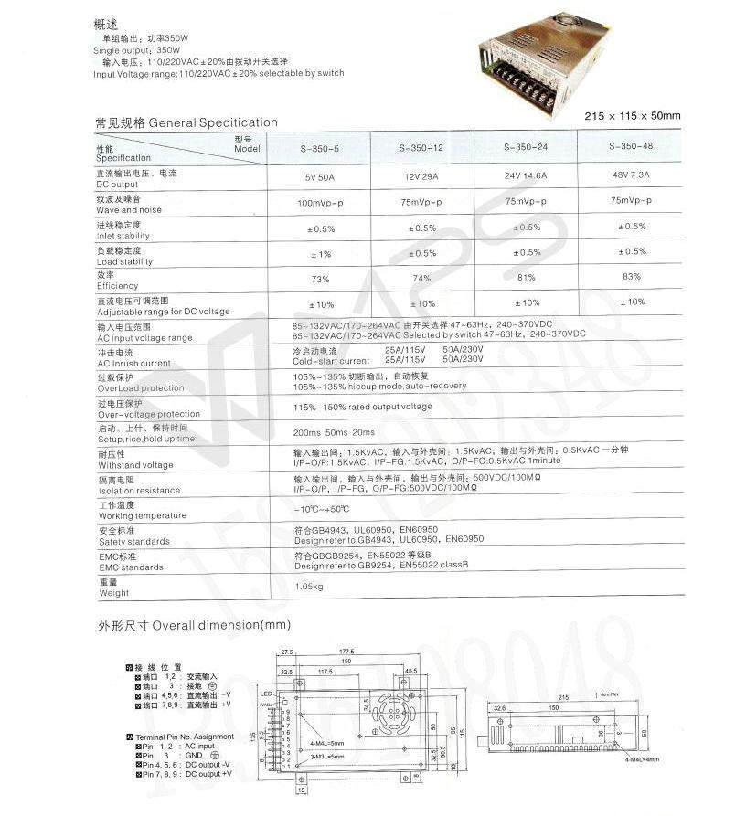 350W Shangyuan S-350-12 Переключение питания, односторонний выход DC 12 В/29A