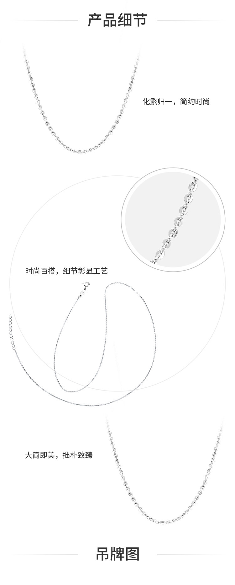 周大福 Модная изысканная цепочка, ожерелье, серебро 925 пробы