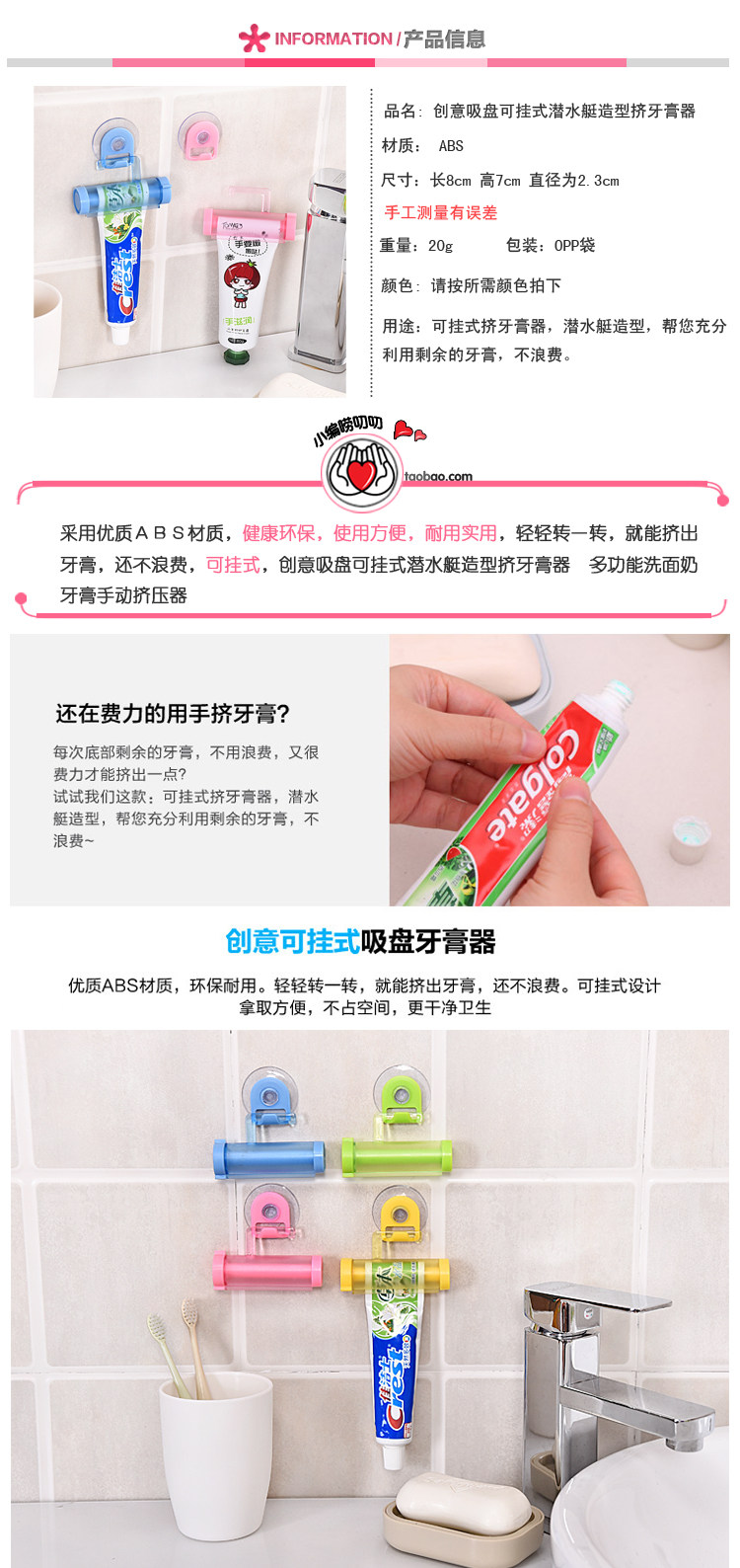 1. Модный партнер по жизни зубной пасты, простую и творческую форму, модную и практичную, сильную всасывающую чашку, легкую в сжатии зубной пасты, которая является практичной, спасает зубную пасту и может добавить вкус в ванную комнату.