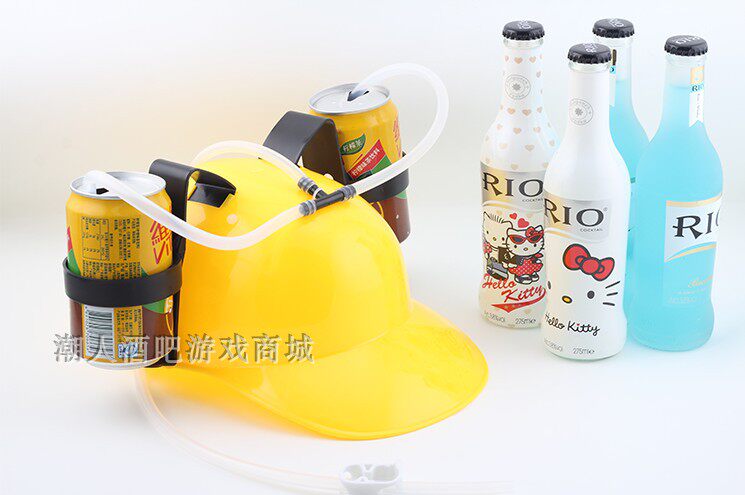 Бегущая мужская шляпа, шлем, соломинку, пьет паровой вода кока -кола, пивная шляпа ленивая шляпа с пивным напитком, чтобы опустить летний артефактный шлем