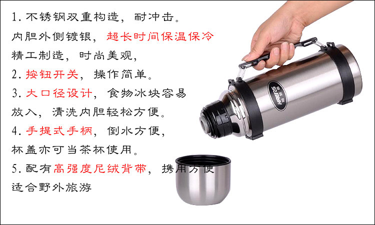 Вакуумный вместительный и большой термос из нержавеющей стали, нержавеющая сталь AISI 304, 1000W, 1200W