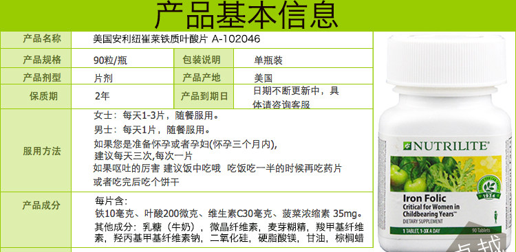 &Middot; производство и продажи США в юго -восточной азиатской таблетках железа Фолиевая кислота Ингредиент: железо 10 мг фолиевой кислоты 133 микрограммы
