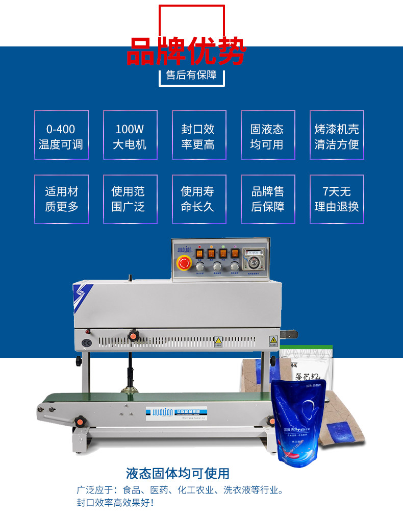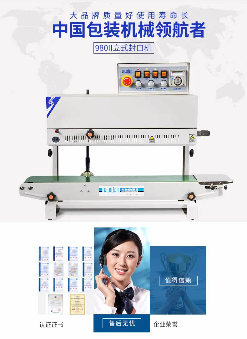 Hualian Sealing Machine 980II Пластическая пленка непрерывная герметичная станка -стенда -запечатывающая машина Независимая сумка (необходимо изготовить)