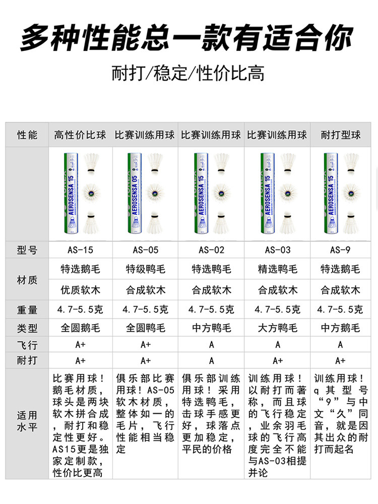 | Цвет: | 12 утиных перьев премиум-класса AS01, отличное соотношение цены и качества., Набор из 12 тренировочных мячей AS02 Selected из утиного пера., Набор из 12 шариков AS9 премиум-класса из гусиного пера, сверхпрочные., Упаковка из 12 шариков из гусиного пера AS15 (2 скорости) с учетом стабильности скорости., Упаковка из 12 шариков из гусиного пера AS15 (3 скорости) с учетом стабильности скорости., Набор из 12 тренировочных мячей AS03 Selected из утиного пера., Набор из 12 отборных мячей AS05 (3 скорости) для игры в утиное перо., Набор из 12 отборных мячей AS05 (2 скорости) из утиных перьев. |