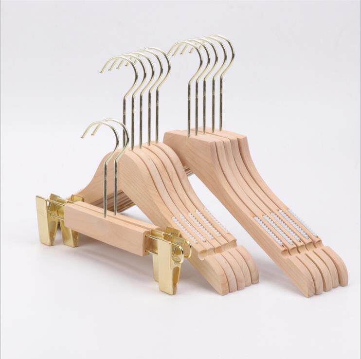 Вешалка из натурального дерева, детские нескользящие золотые штаны подходит для мужчин и женщин, детская одежда