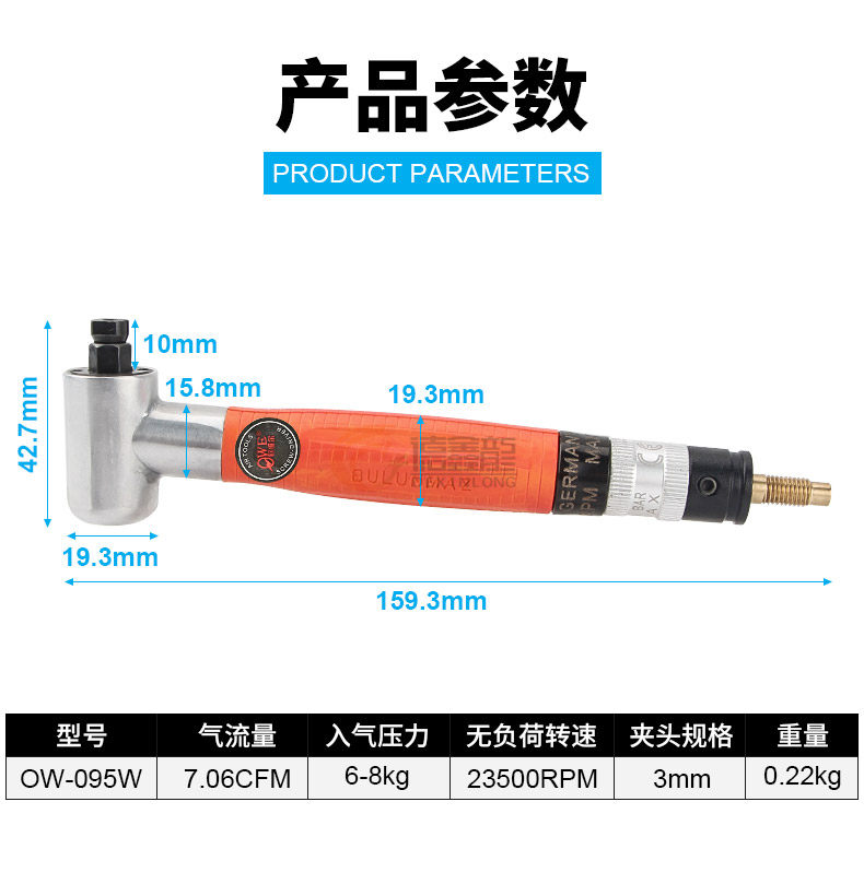 Ovil OW-095W Пневматическая шлифовальная ручка с шлифовальной шлифовальной ручкой 90 градусов шлифовальной машины Гравюра