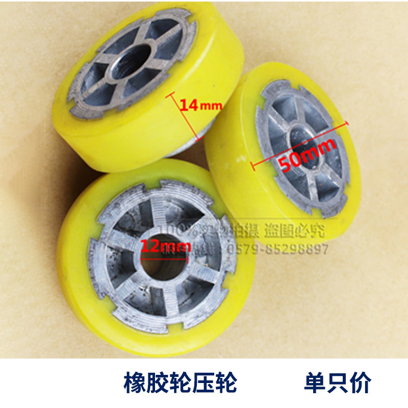 Колесо резинового давления колеса, внешний диаметр составляет 50 мм, не содержит толщины 14,5 мм, толщина ступеней составляет 24 мм, а внутренний диаметр - 12 мм.