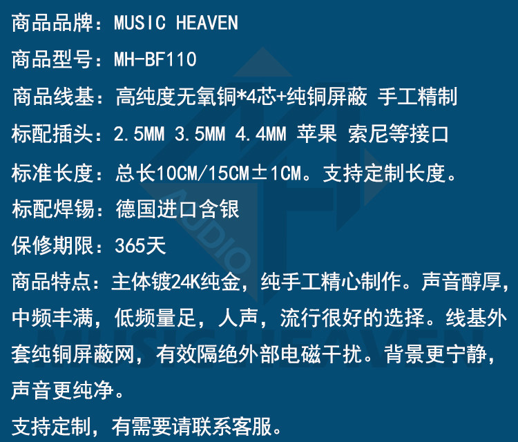 Musicheven BF110 OFC кислородная медная медь 3.5 2.5 4.4 Применимо к спине подключаемой линии подключения Sony Dock Apple Lights