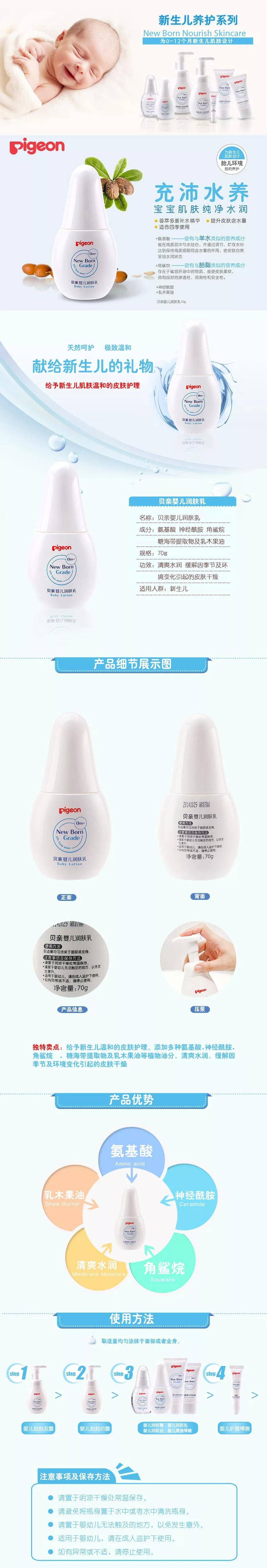 Pigeon, детское увлажняющее молочко для тела, лосьон для ухода за кожей для новорожденных, 70г