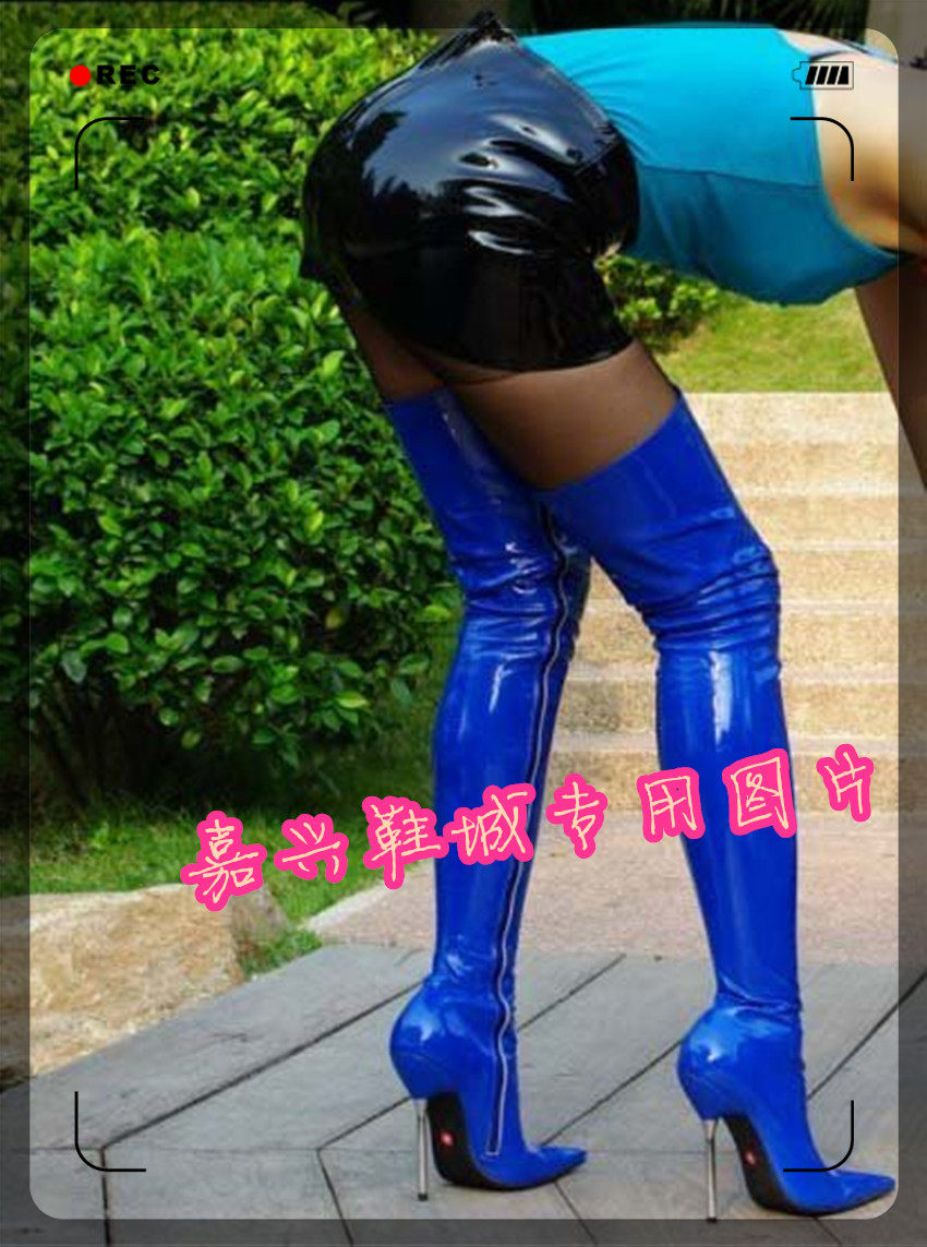 Пикантные сапоги выше колена синего цвета на очень высоком каблуке 12 см с металлическим каблуком для реалити-шоу Сапоги выше колена синие сапоги A00XL