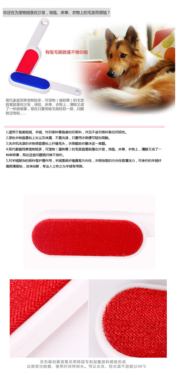 Классический творческий дизайн,Сделайте подробности жизни разными Одежда, диваны и ковры всегда легко избавиться от раздражающей пыли и перхоти,Теперь вам не нужно беспокоиться об этом для этого,Этот продукт использует корейские технологии,Существует сильная адсорбционная сила (однонаправленная адсорбция), просто почистите ее слегка,Пыль и перхоть были немедленно удалены.Держите свежую вдохновение,Вкус изысканная жизнь!! Вы, кто преследует качество жизни,Я никогда не буду пропустить такие классические детали!!
