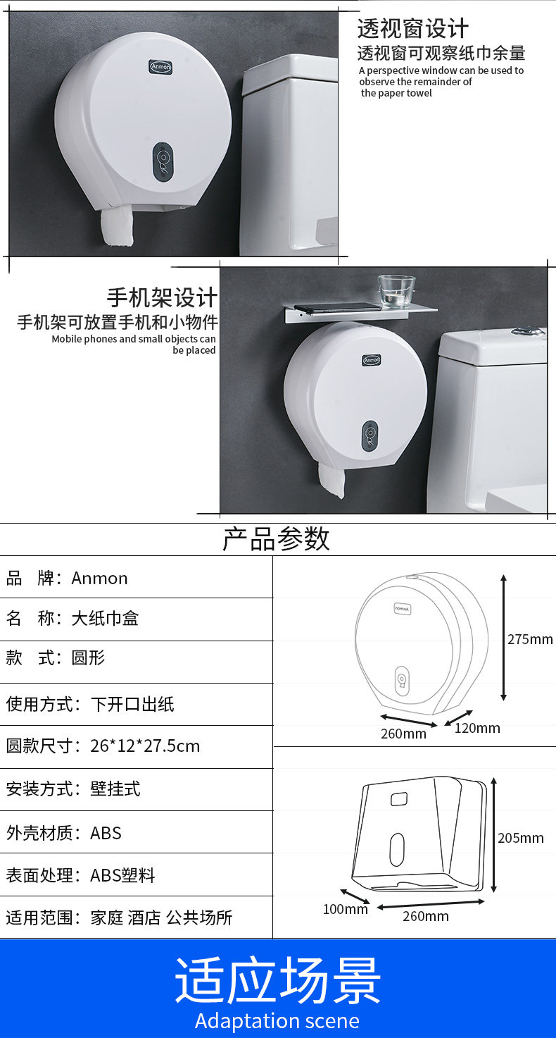 Anmon Коммерческая пластиковая пластиковая каркавая каркасная рама для туалетной бумаги.