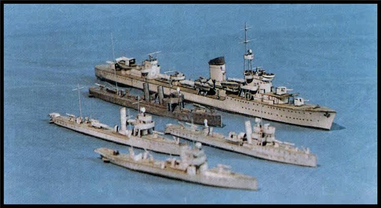 Он содержит пять польских военно -морских кораблей накануне Второй мировой войны, одна из которых одна из эсминцев, две каноры (две модели) и две лодки торпеды (та же модель)